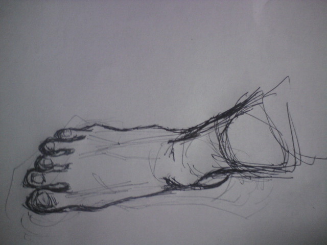 右足・・・、だと思います。 見た感じ4~5分クオリティ。 ていうか、画像でかっ。 すべて無意識のうちの行動らしく、 さっぱり描いた記憶がないのですが。 いきなり目の前に現物が現れた感じ。 怖いですね。 あれ?みたいな。 というか、今回は絵という解り易い物証がありましたが、 もしかすると、けっこう頻繁に4~5分くらいの記憶を失っていたりして・・・。 ・・・・・・。 ・・・・・・。 ・・・・・・。 こわっ。 怖すぎました。 あ、ぜんぜん関係ありませんが、 僕、つい最近まで2012年の気分で過ごしていたのですが、 実は2010年でした。 まじかよ・・・、時を掛けちゃった気分だぜ・・・。 PR